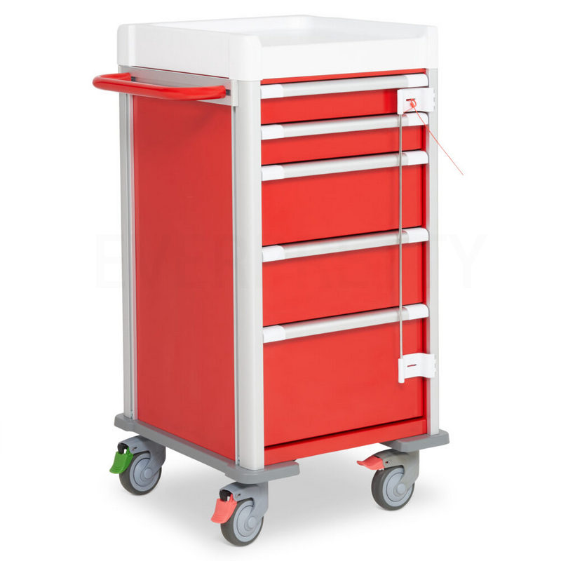 The OEKAN emergency trolley is designed with a high priority on patient safety, and offers an advanced and complete emergency treatment solution for hospitals and healthcare centers. Our emergency crash carts are durable and come with a full-length locking bar and individually numbered plastic seals to keep them safe. To meet the user’s specific requirements, the emergency trolley can be customized with drawer dividers and various accessories. In addition, our hospital emergency trolley has extra storage space, including a pull-out side tray and a one-piece molded worktop with slightly raised edges for additional work surface space. OEKAN emergency trolley is ideal for hospital emergency situations. Contact us to learn more details about this emergency crash cart!